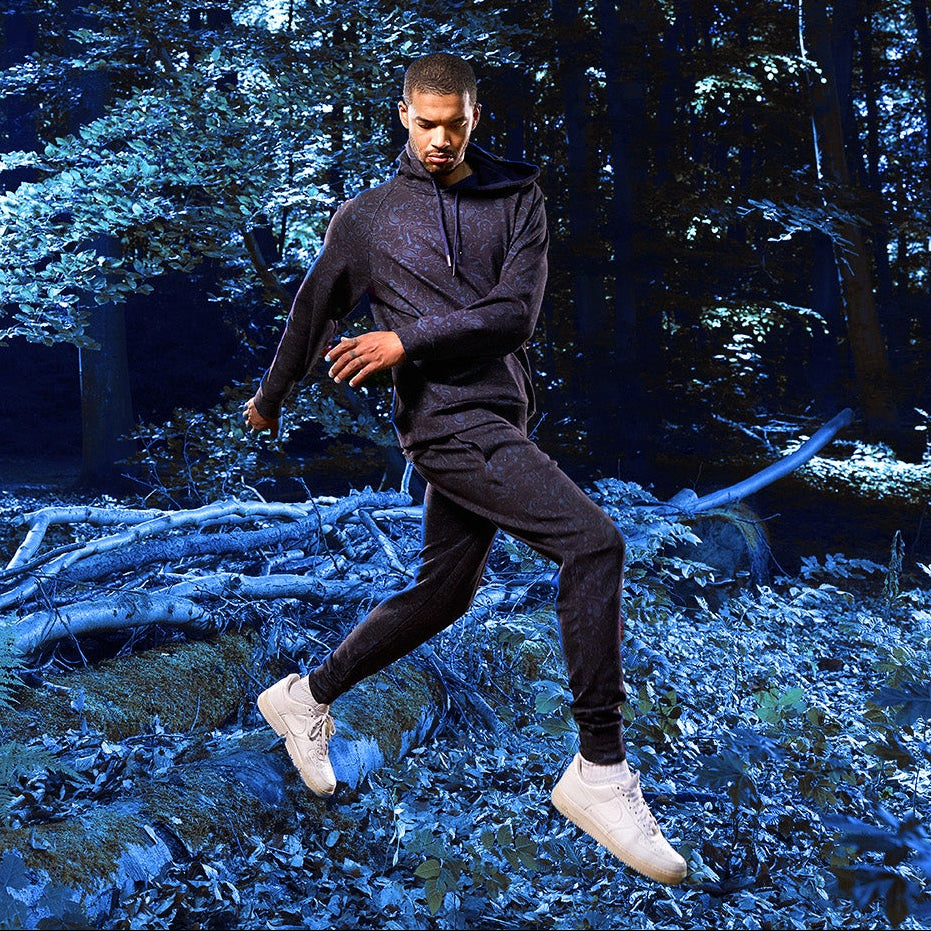 Relaxed silhouettes in sueded stretch cotton spandex, designed for modern comfort and style.