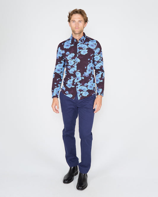 SCOTT HANDCUT FLORAL SHIRT - BLUE