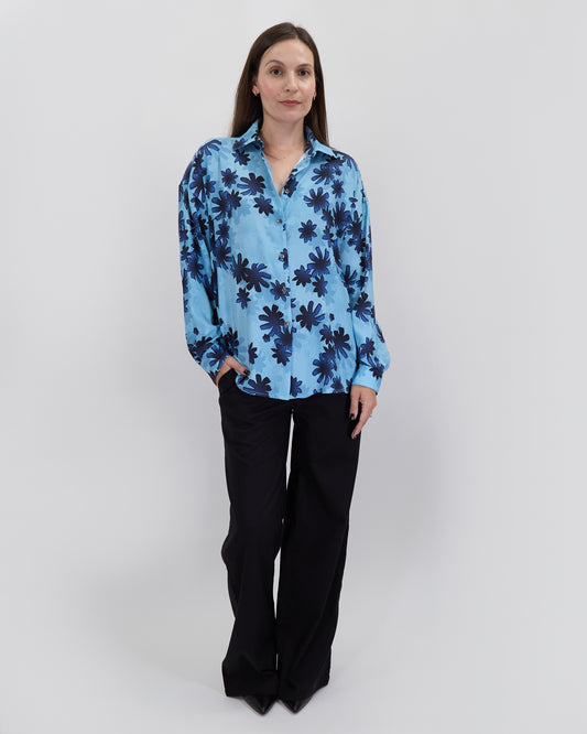 SOPHIE SILK OVERSIZED SHIRT - SOFTBLOOM NAVY