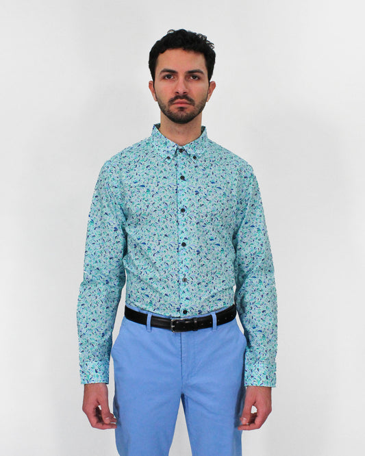 MITCHELL SMALL SWIRL SHIRT IN LAGOON