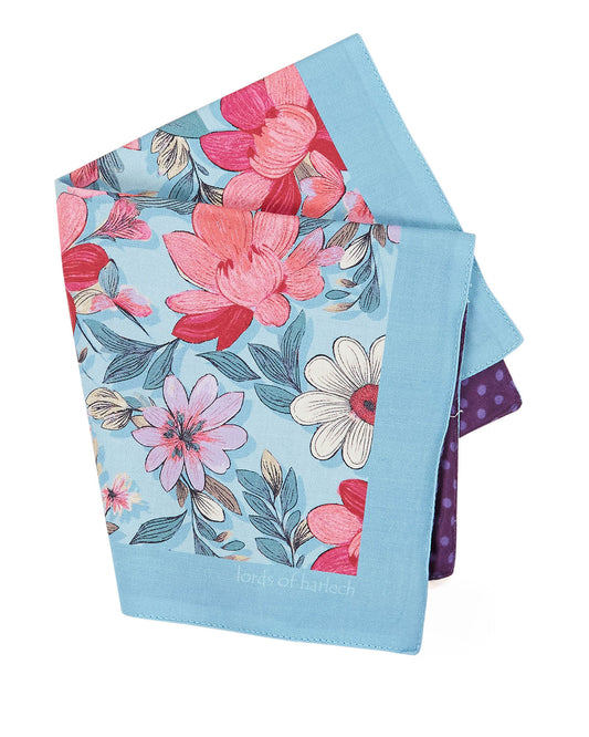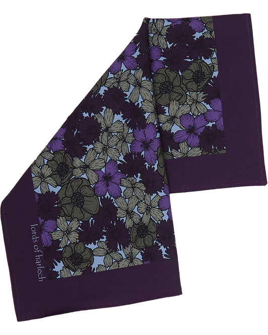HUDSON DENSE FLORAL MERINO HANDKERCHIEF POCKET SQUARE - LAVENDER