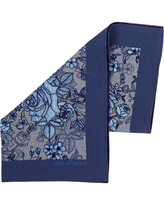 HUDSON CATALAN FLORAL MERINO HANDKERCHIEF POCKET SQUARE - NAVY
