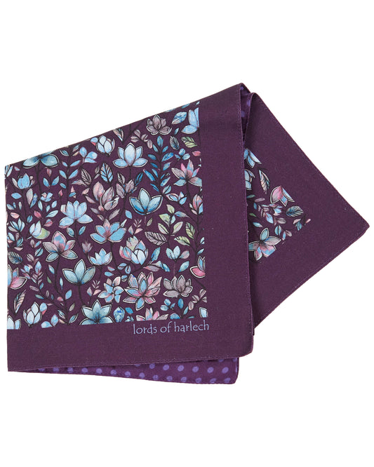 HUDSON VALENCIA FLORAL MERINO HANDKERCHIEF POCKET SQUARE - PLUM