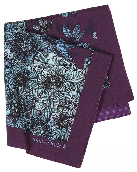 HUDSON MYSTIC FLORAL MERINO HANDKERCHIEF POCKET SQUARE - PLUM