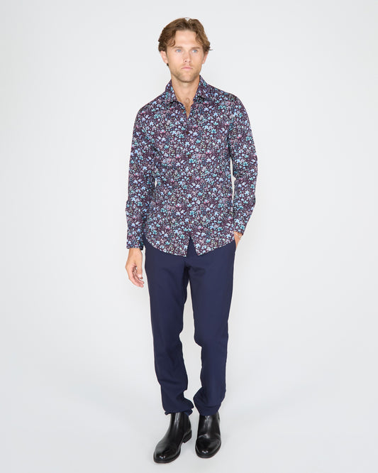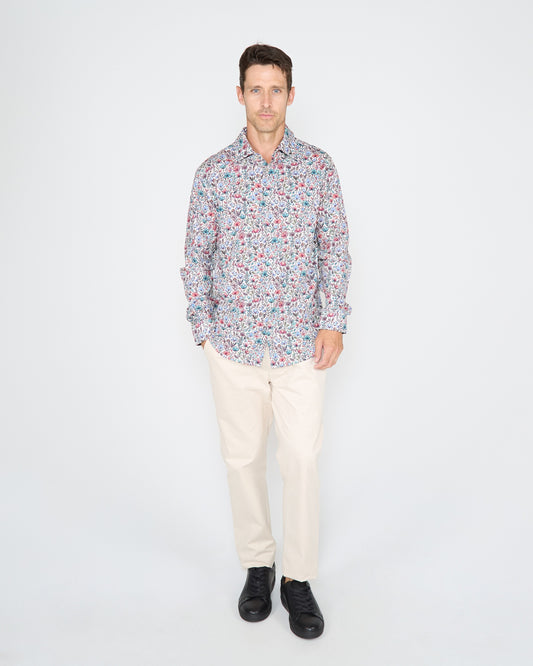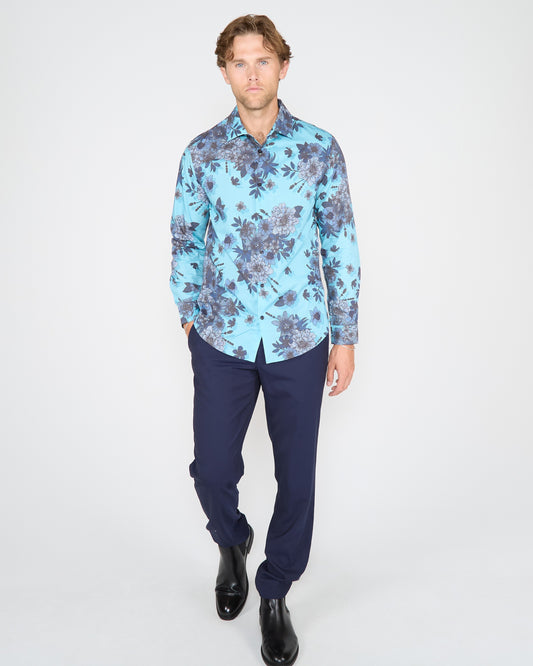 SHERLOCK VALENCIA FLORAL TAILORED MERINO SHIRT - TEAL
