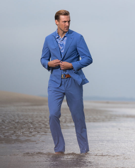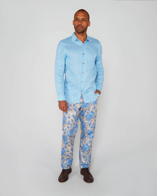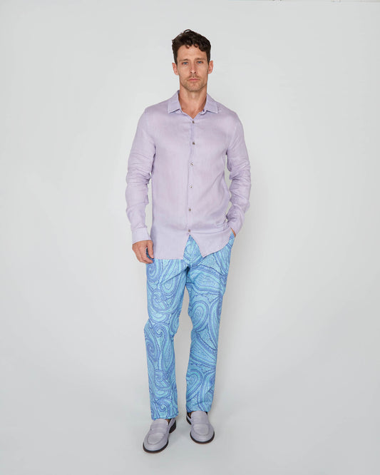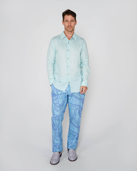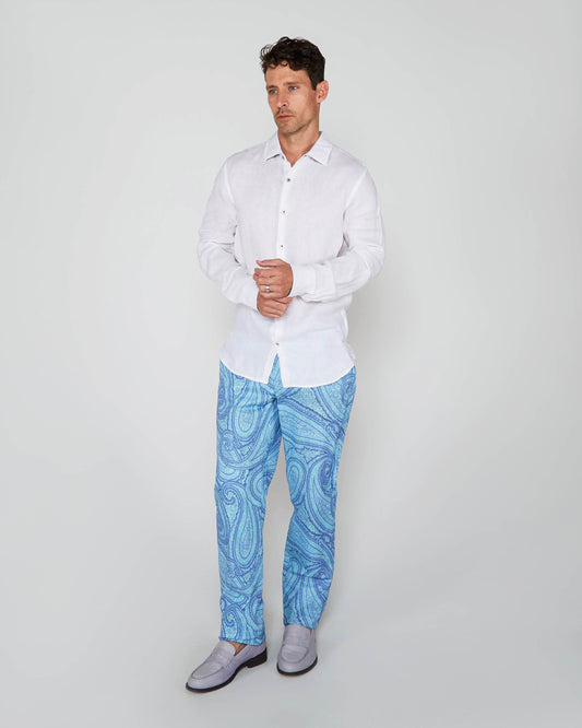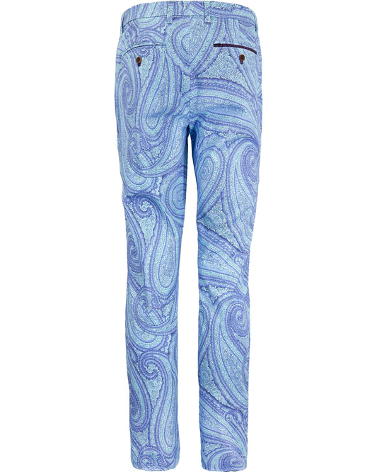 CASPIAN WILD PAISLEY OXFORD STRETCH COTTON CHINO PANT - BLUE
