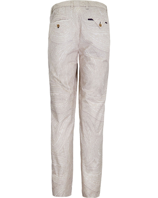 CASPIAN WILD PAISLEY OXFORD STRETCH COTTON CHINO PANT - IVORY