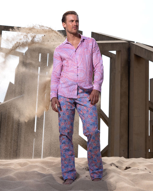CASPIAN DENSE FLORAL STRETCH COTTON CHINO PANT - PINK