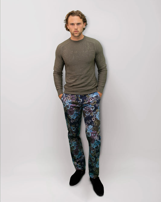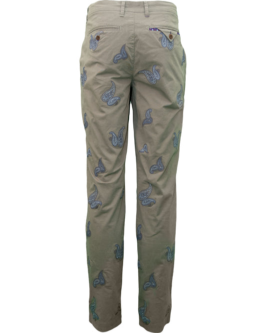 CHARLES EMBROIDERED PAISLEY PANT - MOSS