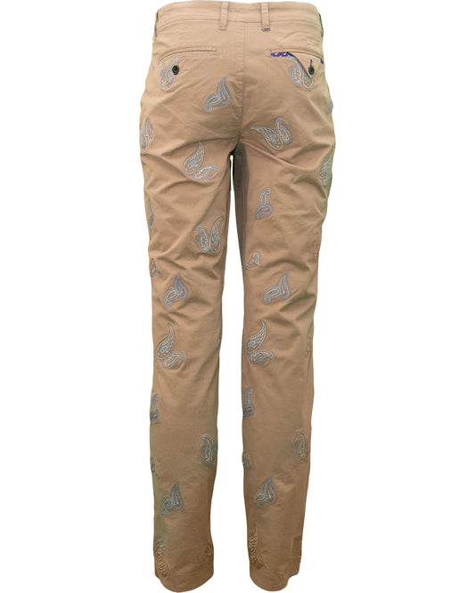CHARLES EMBROIDERED PAISLEY PANT - TAN