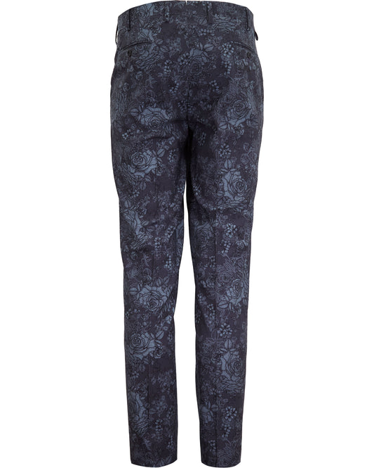 CASPIAN MARCO FLORAL STRETCH COTTON CHINO PANT - NAVY