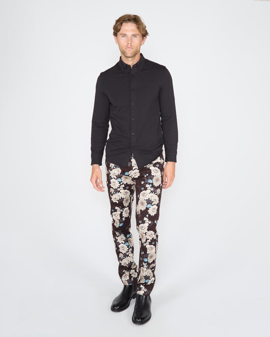 CASPIAN MARCO FLORAL STRETCH COTTON CHINO PANT - CHARCOAL
