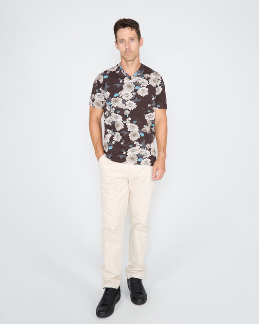 MAZE SERIOUS FLORAL V-NECK TEE - BLACK