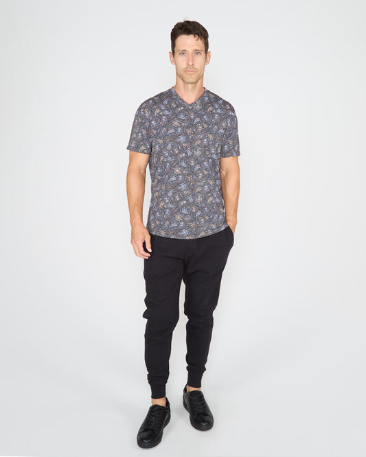 MAZE MADRID PAISLEY V-NECK TEE - BLACK