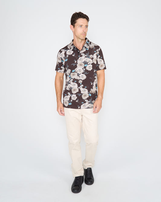 PIETRO SERIOUS FLORAL POLO SHIRT - BLACK