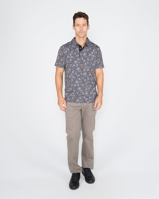 PIETRO MADRID PAISLEY POLO SHIRT - SMOKE