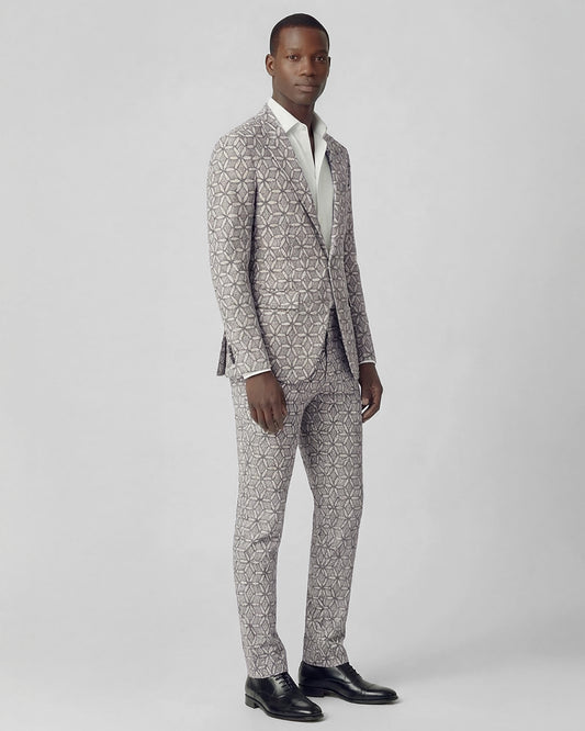 HADRIAN EXOTIC FLORAL NEUTRAL MENS TAILORED BLAZER