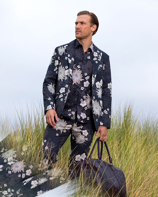 JULIUS FLORAL MEMORY BLAZER - NAVY