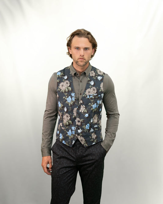 WILBUR AUGUSTUS FLORAL WAISTCOAT VEST - BLACK