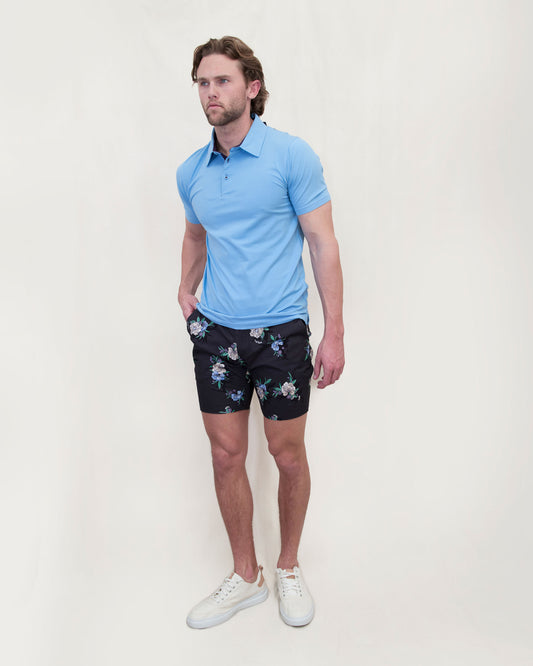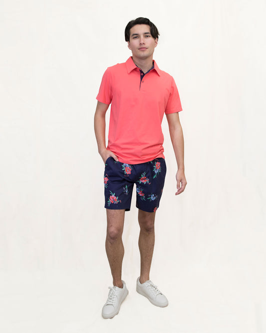 PIETRO SNAP FLORAL POLO SHIRT - NAVY
