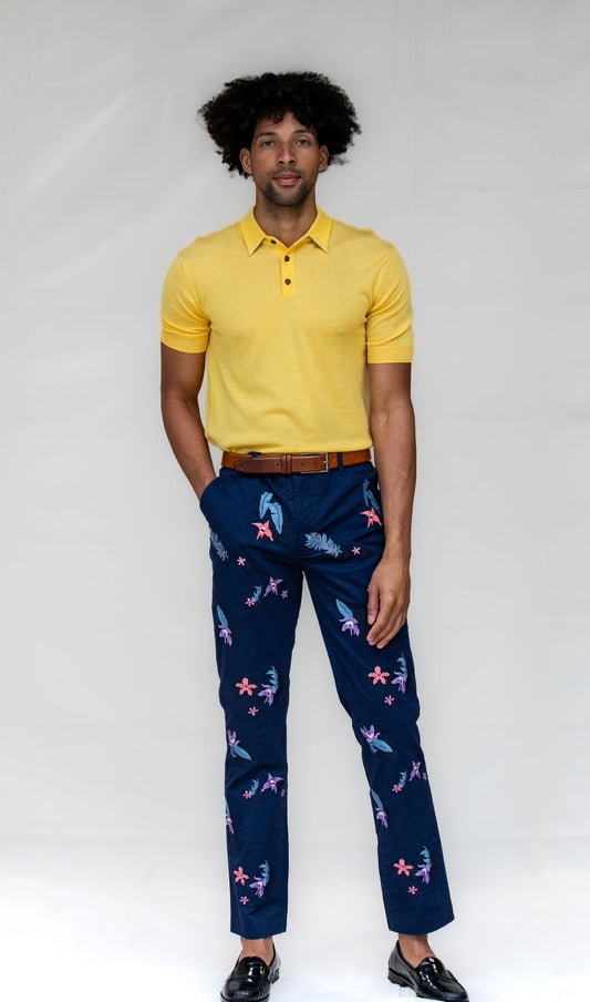 CHARLES FLOWER EMBROIDERY PANT - NAVY