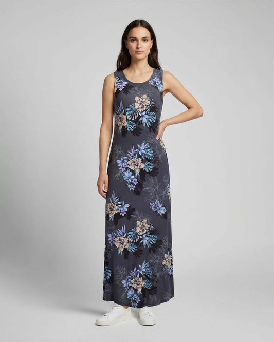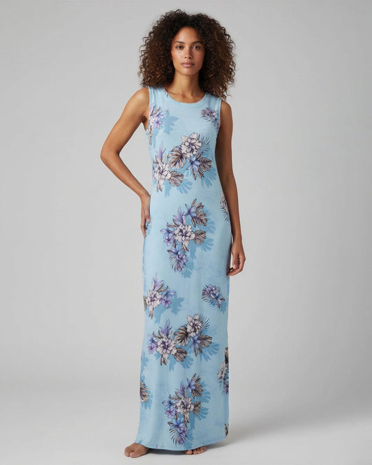 TRUDY EXOTIC FLORAL TEAL WOMENS SLEEVELESS MIDI DRESS