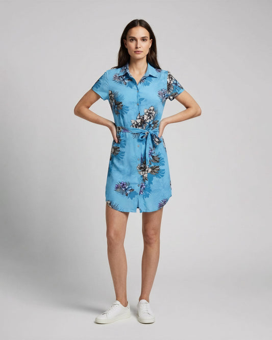 CRYSTAL EXOTIC FLORAL TEAL WOMENS SHIRT DRESS