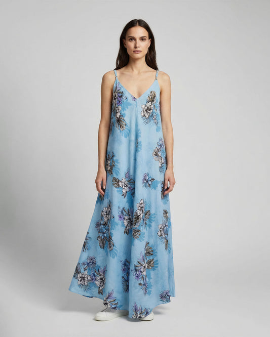 DORA EXOTIC FLORAL TEAL WOMENS LINEN OVERSIZED DRESS