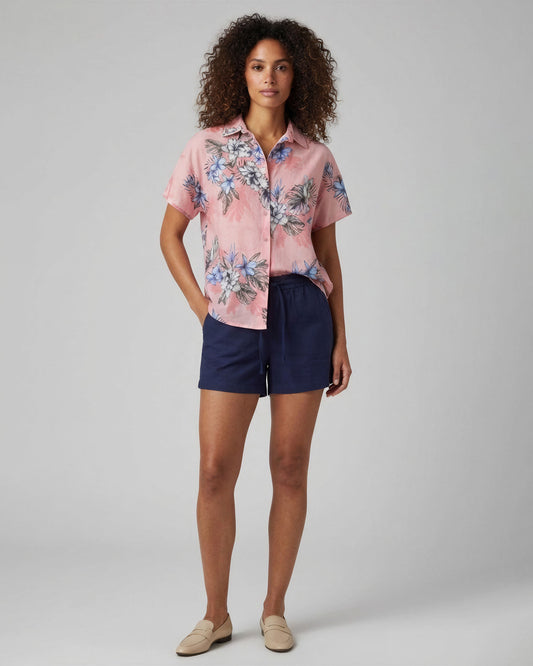 LEANNE EXOTIC FLORAL NATURAL WOMENS DRAWSTRING SHORT