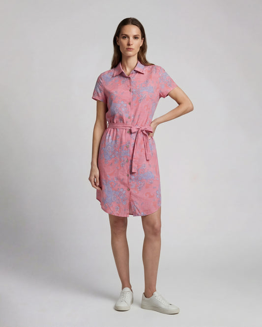 CRYSTAL PAISLEY EXPLOSION CORAL WOMENS SHIRT DRESS