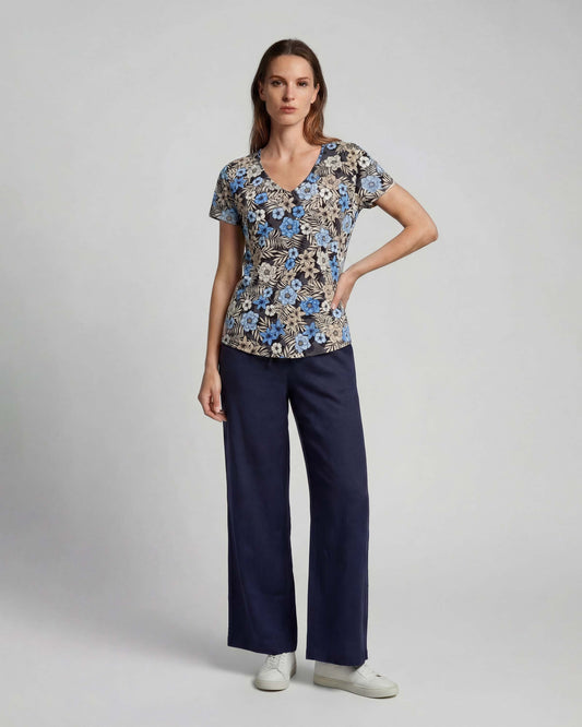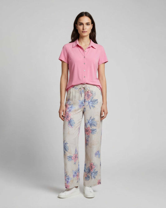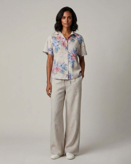 LILLIAN EXOTIC FLORAL NATURAL WOMENS WIDE-LEG PANT