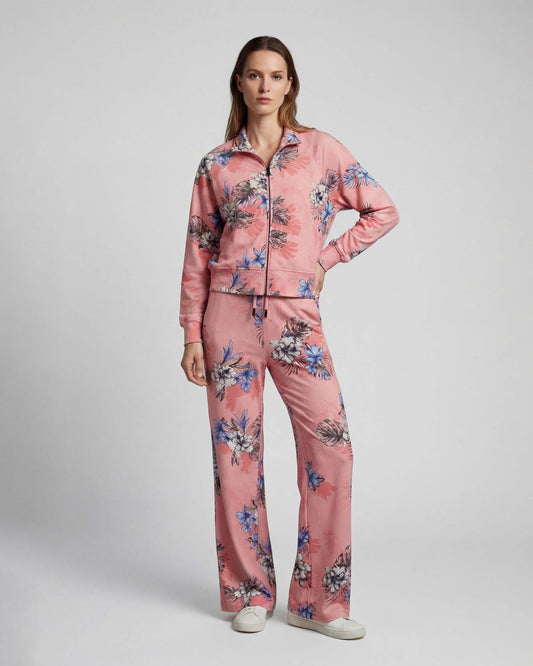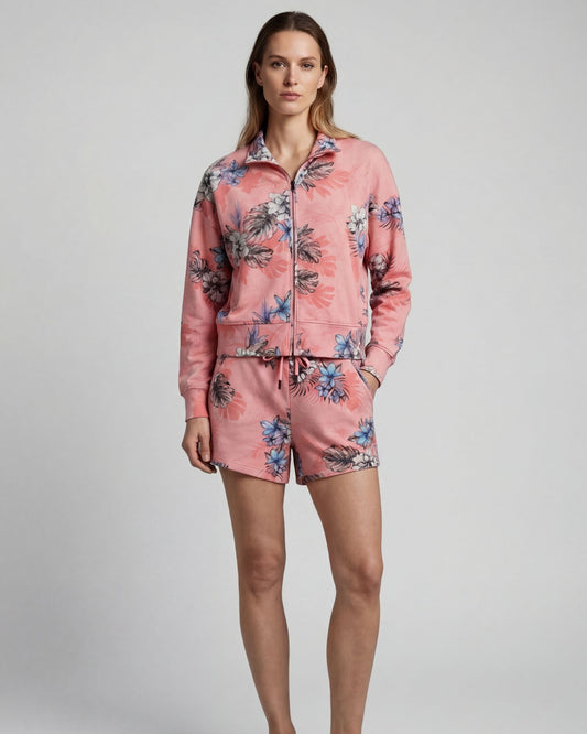 JUDY EXOTIC FLORAL CORAL WOMENS CROPPED ZIP JACKET