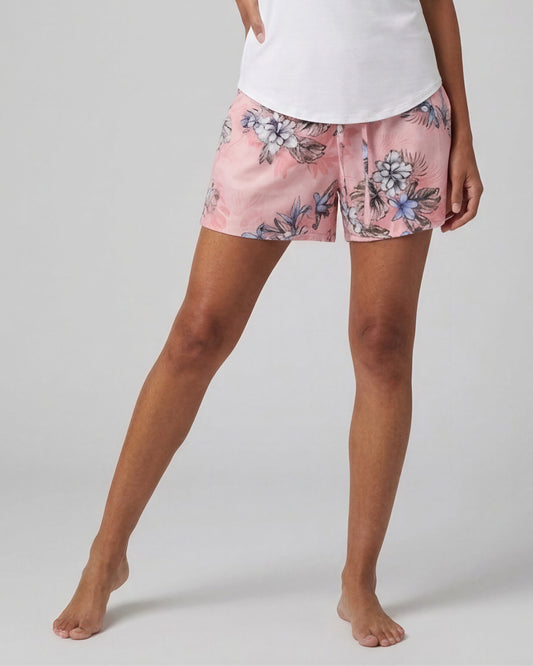 LEANNE EXOTIC FLORAL CORAL WOMENS DRAWSTRING SHORT