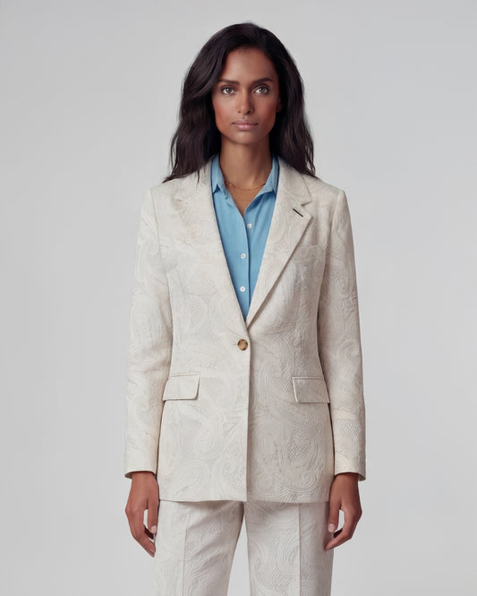 JULIA CROCHET PAISLEY IVORY WOMENS TAILORED BLAZER