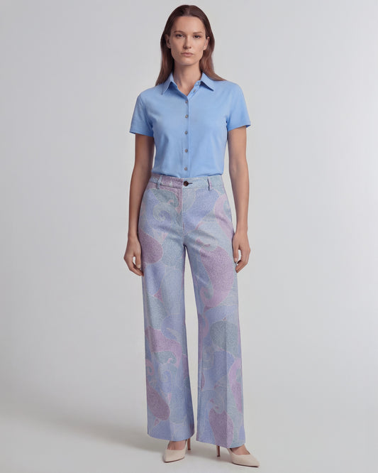 PHEOBE GRAIN PAISLEY TEAL WOMENS WOOL WIDE-LEG PANT