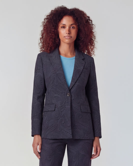 JULIA GRAIN PAISLEY TEAL WOMENS TAILORED BLAZER