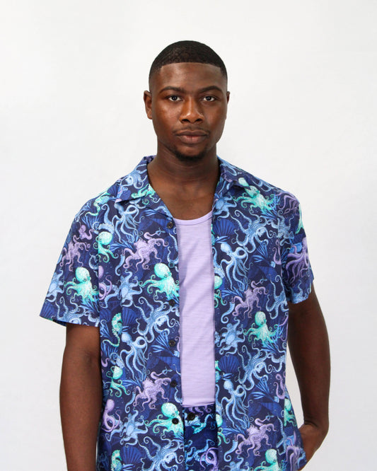 RALPH OCTOPUS PARTY CAMP SHIRT IN NAVY