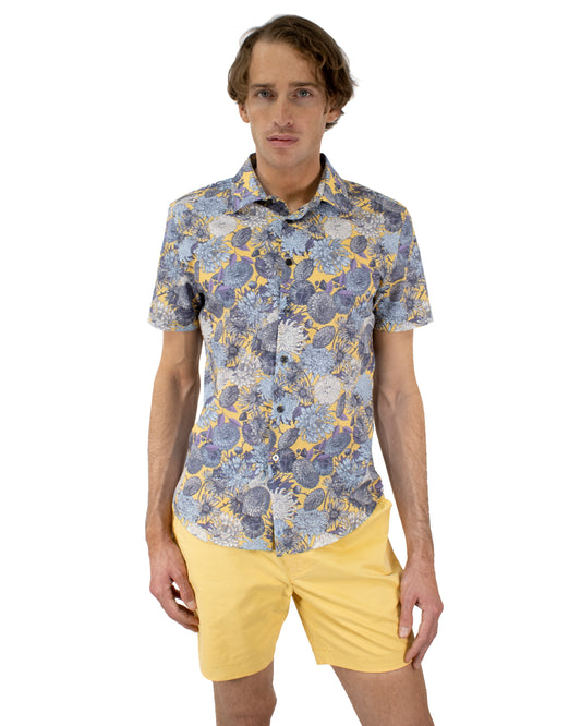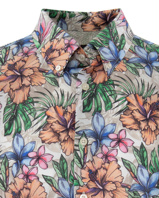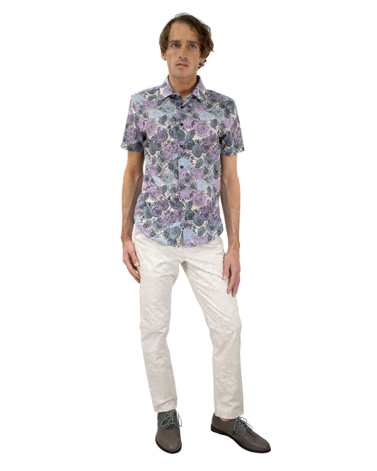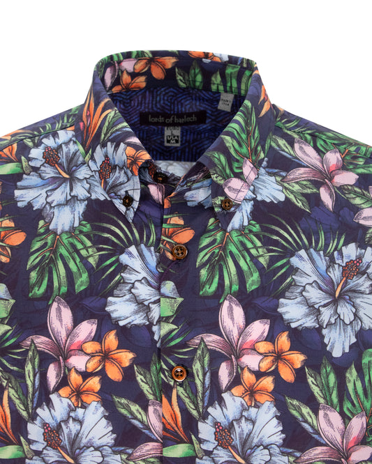 MAZE HIBISCUS GARDEN SHIRT IN BLUE