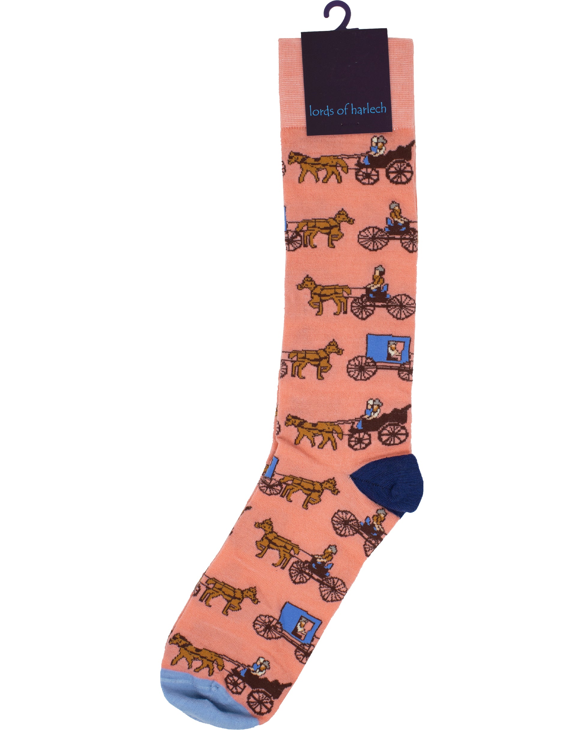 New! These Coral Horse and Buggy socks are a part of our new Spring Summer 2021 collection "Rumspringa". These super soft socks are made with extrafine merino wool that keeps your feet dry and cozy all day.