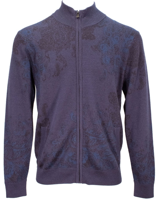 FREDERICK PAISLEY FULL-ZIP CARDIGAN - NAVY