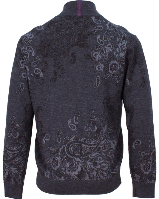 FREDERICK PAISLEY FULL-ZIP CARDIGAN - CHARCOAL