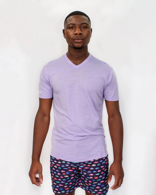 VICTOR V-NECK MERINO SHIRT - LAVENDER