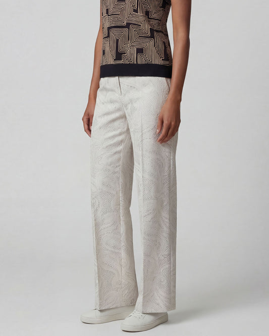 PHEOBE CROCHET PAISLEY IVORY WOMENS WOOL WIDE-LEG PANT