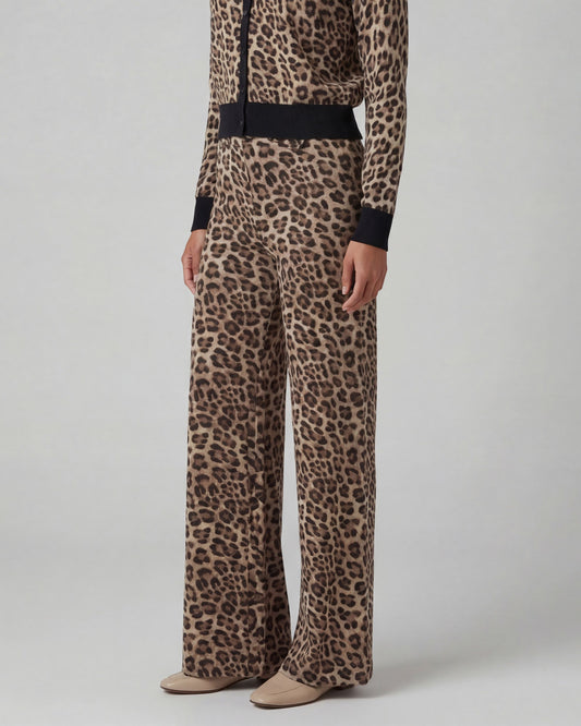 PHEOBE LEOPARD BROWN WOMENS WOOL WIDE-LEG PANT