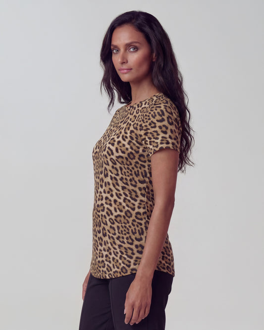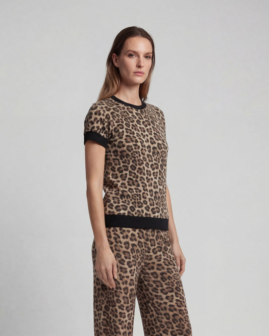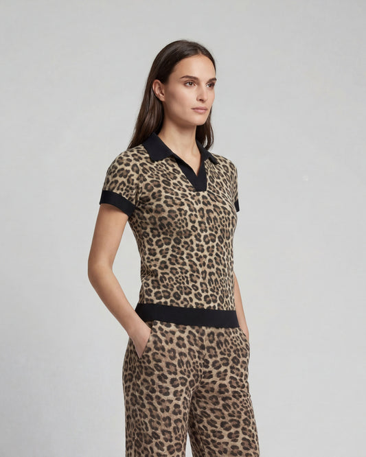 JESSICA LEOPARD BROWN WOMENS MERINO SILK CASHMERE POLO