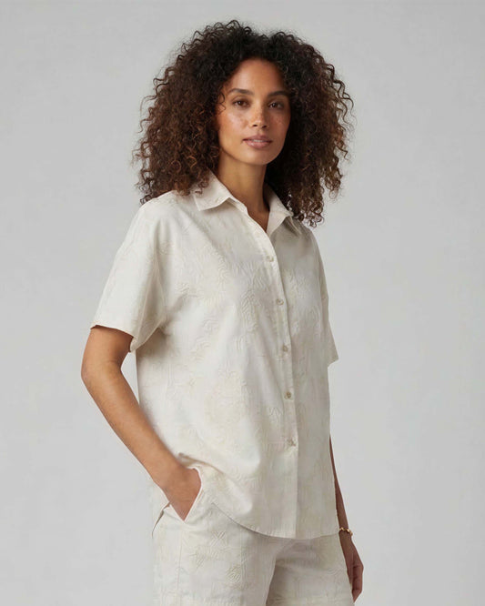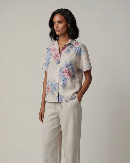 LARA EXOTIC FLORAL NATURAL WOMENS LINEN PRINTED SHIRT