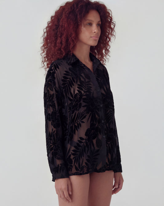 NADIA COUNTRY FLORAL VELVET DEVORE BLACK WOMENS SHIRT