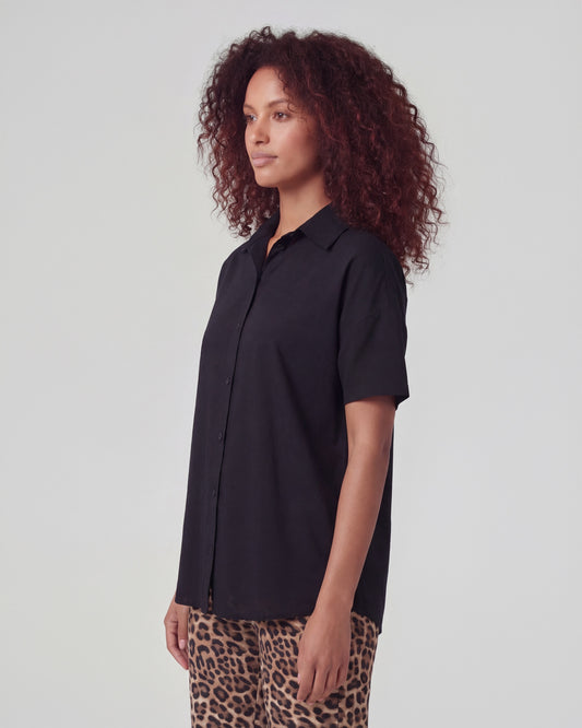 LYDIA LEOPARD BROWN WOMENS LINEN SHIRT