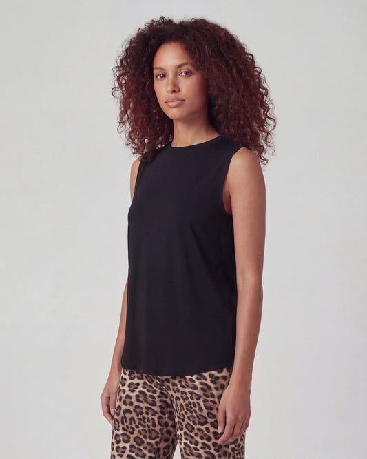 TARA LEOPARD BROWN WOMENS MUSCLE TANK