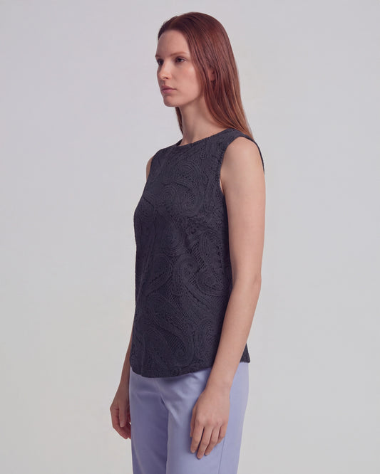 KATHERINE CROCHET CAVIAR WOMENS CAP SLEEVE TOP